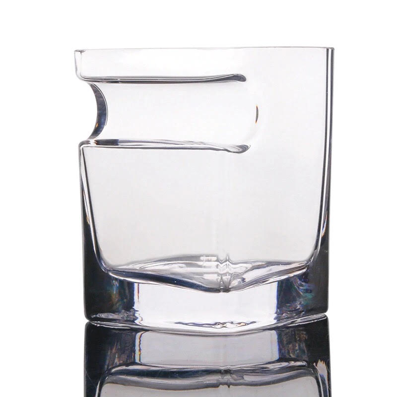 This whiskey glass has a cutout that can hold your favorite cigar.